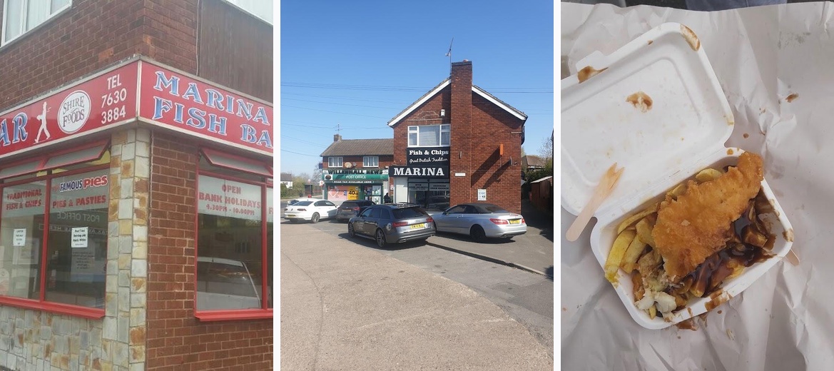 Marina chip shop. I'm from Grimsby so know a good peice of fish and this didn't disappoint perfectly fish n chips. The lovely lady who served me told me she only had 5 years to retirement yeah right. I think she was putting me off asking her out for dinner. She doesn't look a day over 50. great customer service