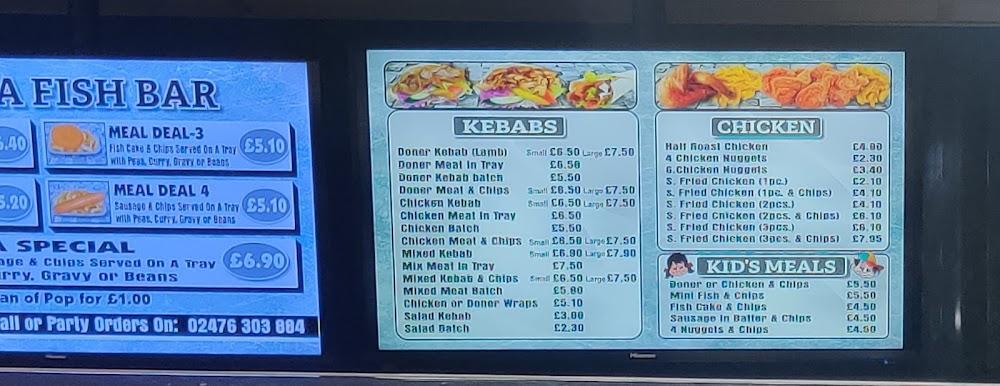 Marina Fish Bar is located in a cozy corner of Coventry at 6 St James Ln. This family-run establishment has been a local favorite, known for its impressive range of delectable food options. The menu boasts an assortment of traditional fish and chips, tender kebabs, juicy burgers, and even halloumi, catering not just to locals but also to curious tourists exploring the area.
